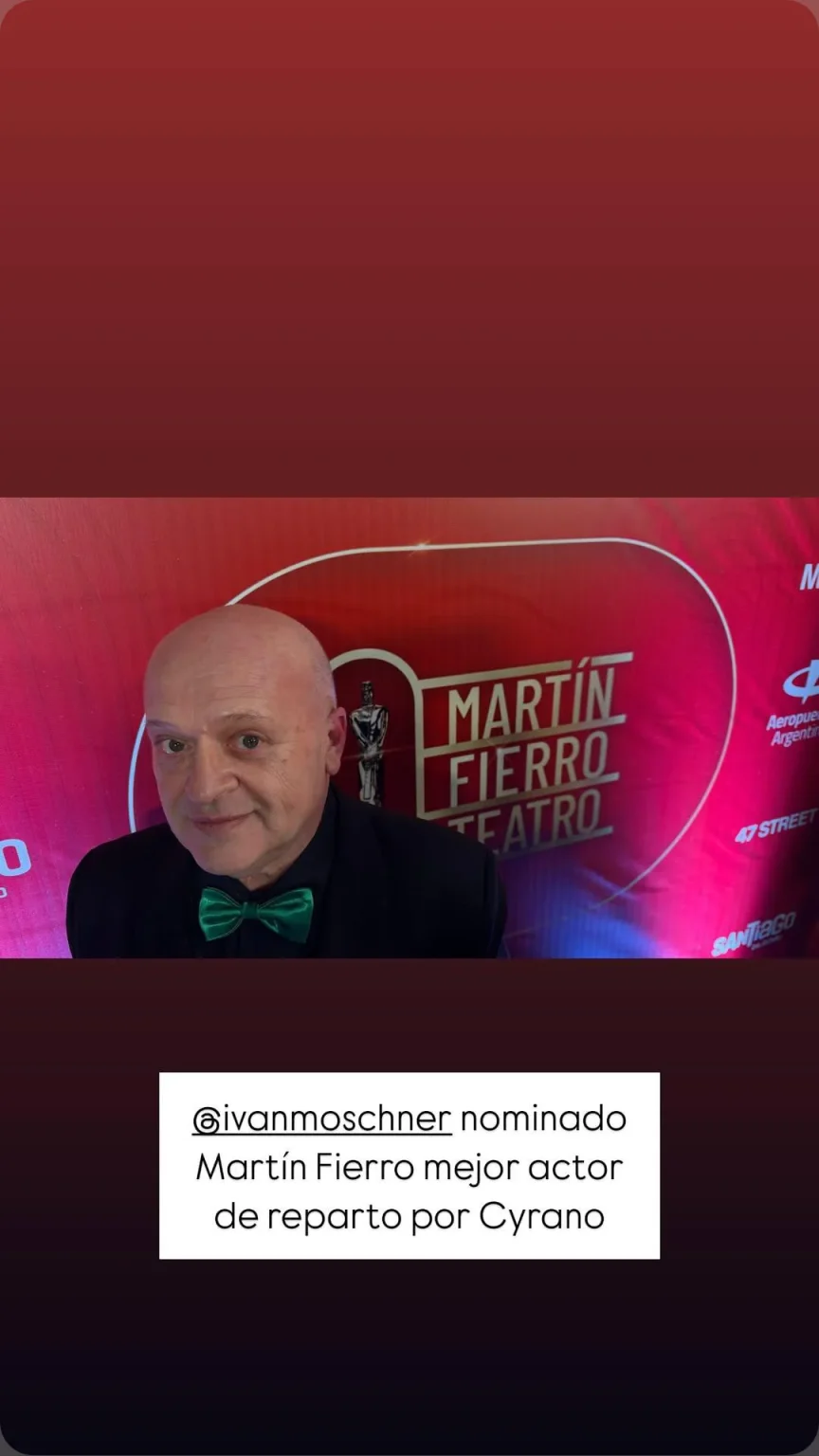 El actor misionero Iván Moschner recibió el premio Martín Fierro de Teatro al Mejor Actor de Reparto por su papel en Cyrano. La ceremonia distinguió a la pieza teatral además acomo Mejor Obra de Teatro Oficial.