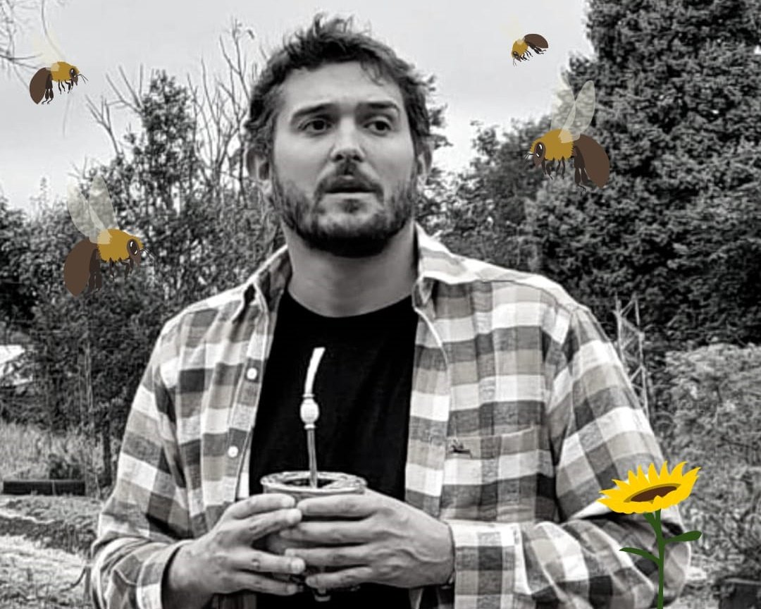 A Müller llamarlo así es poco. Es quien más sabe de la materia y que además instruye al ministro en esos asuntos. Es abogado de profesión, apicultor y meliponicultor. Es Técnico en Gestión y Producción Apícola y Licenciado en Apicultura para el Desarrollo de la Facultad de Ciencias Veterinarias.