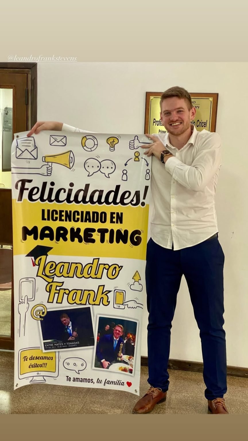 A sus logros en los medios se suma ahora un importante hito académico. Leandro Frank se recibió de Licenciado en Marketing en la Universidad Gastón Dachary, tras defender con éxito su tesis titulada “Análisis y diseño de un plan de marketing social para la prevención del grooming en zonas rurales de Misiones”, bajo la dirección del Lic. Víctor Perren. El trabajo, de fuerte contenido social, propone estrategias de concientización y prevención en contextos rurales, integrando la comunicación con el compromiso comunitario.