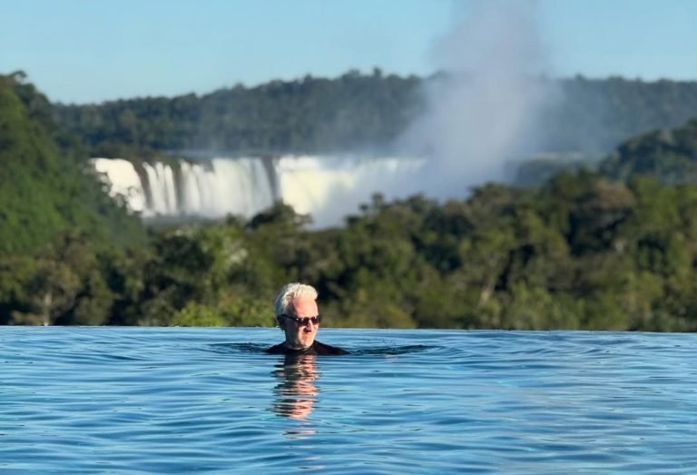 Andy Kusnetzoff, maravillado en las Cataratas del Iguazú