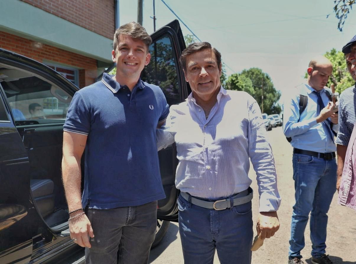 De camisa celeste a rayas y jeans clásico, el presidente de la Legislatura Carlos Rovira votó al mediodía en la escuela N° 528 Ramón García, y como es tradición lo hizo acompañado de su hijo Ramiro.