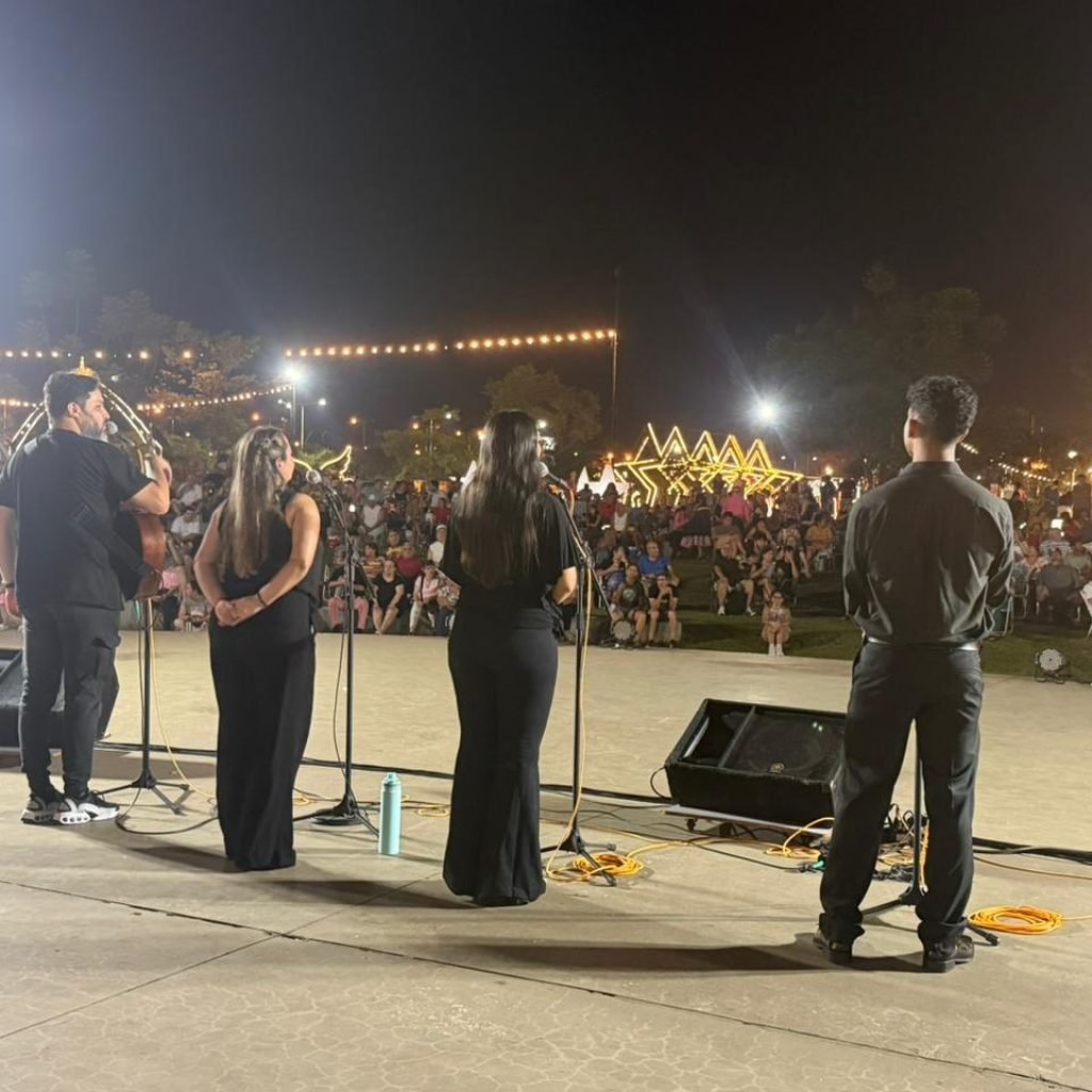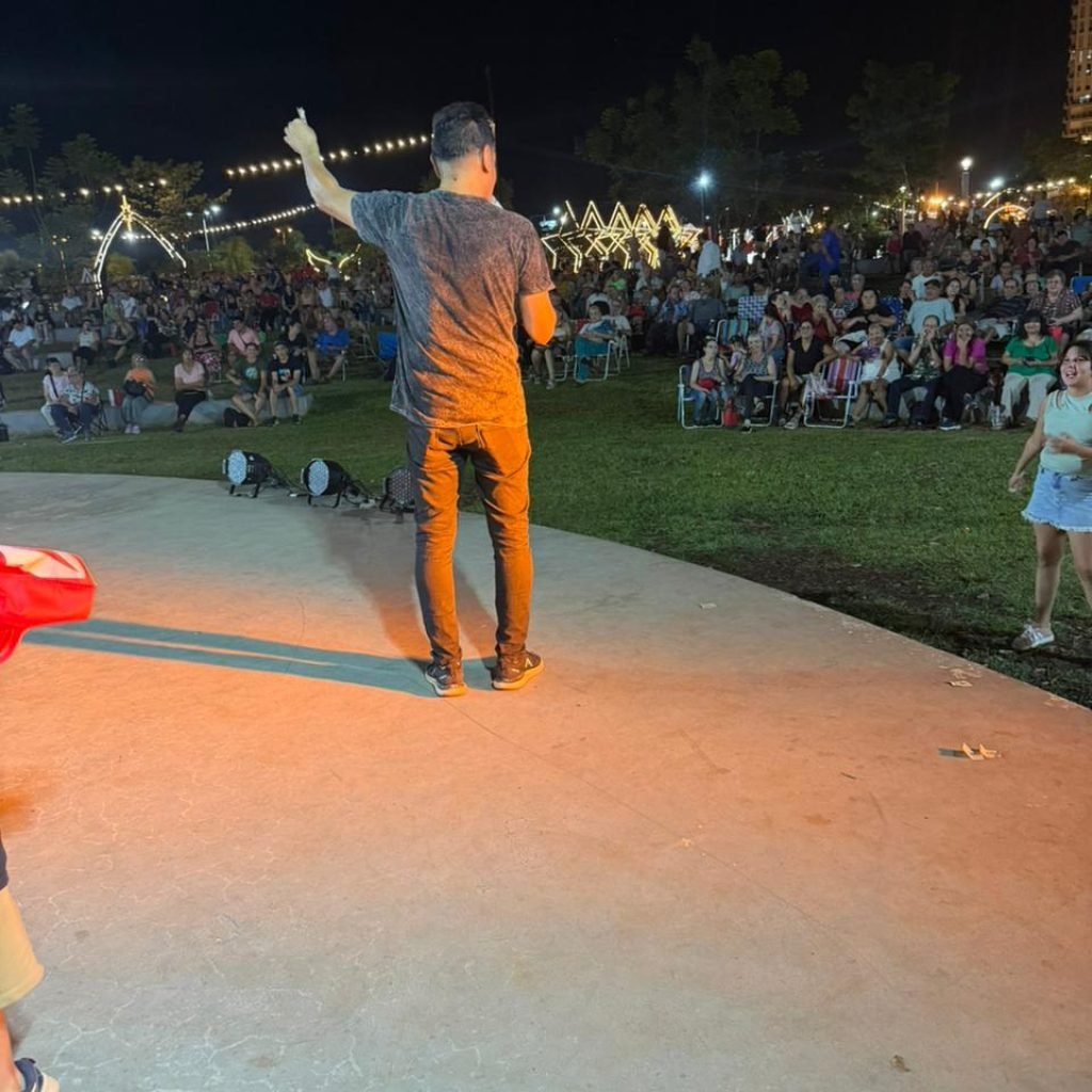 Desde las 20 horas, vecinos, familias y turistas disfrutaron de un espectáculo integral que combinó música y danza en un mismo escenario, con las presentaciones de Rulo Grabovieski, Nito Encina y Rafa Villalba, el Ballet de Adultos Mayores Akarague Moroty, el Ensamble Vocal de la Escuela de Música, el Ballet Folklórico Municipal, Alba Toledo Tango, el dúo Teko Vy’a integrado por Lucía y Analía, Natalia Haughan con baile indú, Jana Paz con baile árabe, Selva María, Chamalambo, Tereza Texeira, Humberto Dávalos, Carlos Kijuk y su acordeón, Jorge Reyes y Nene Scioli, quienes desplegaron un repertorio que fue ovacionado por el público.